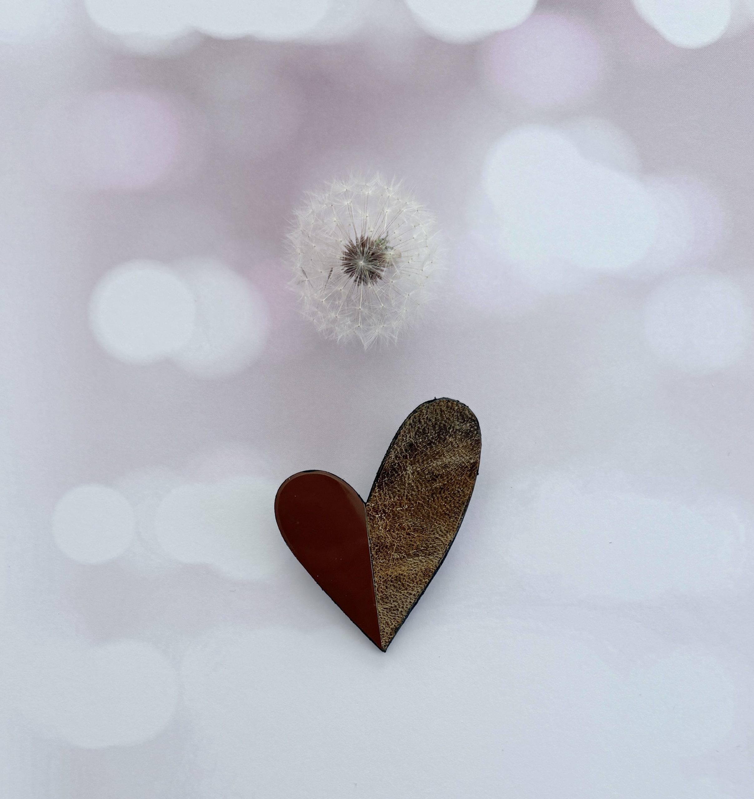 Broche cœur « Be love » en cuir brun et mordoré
