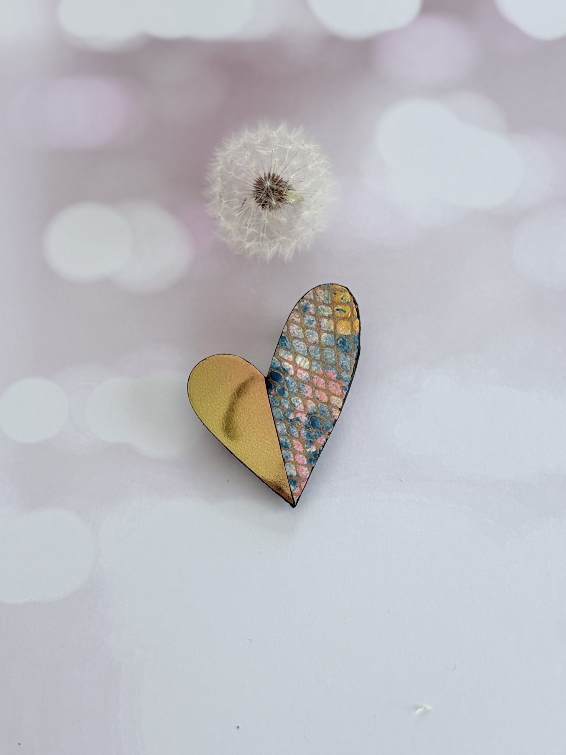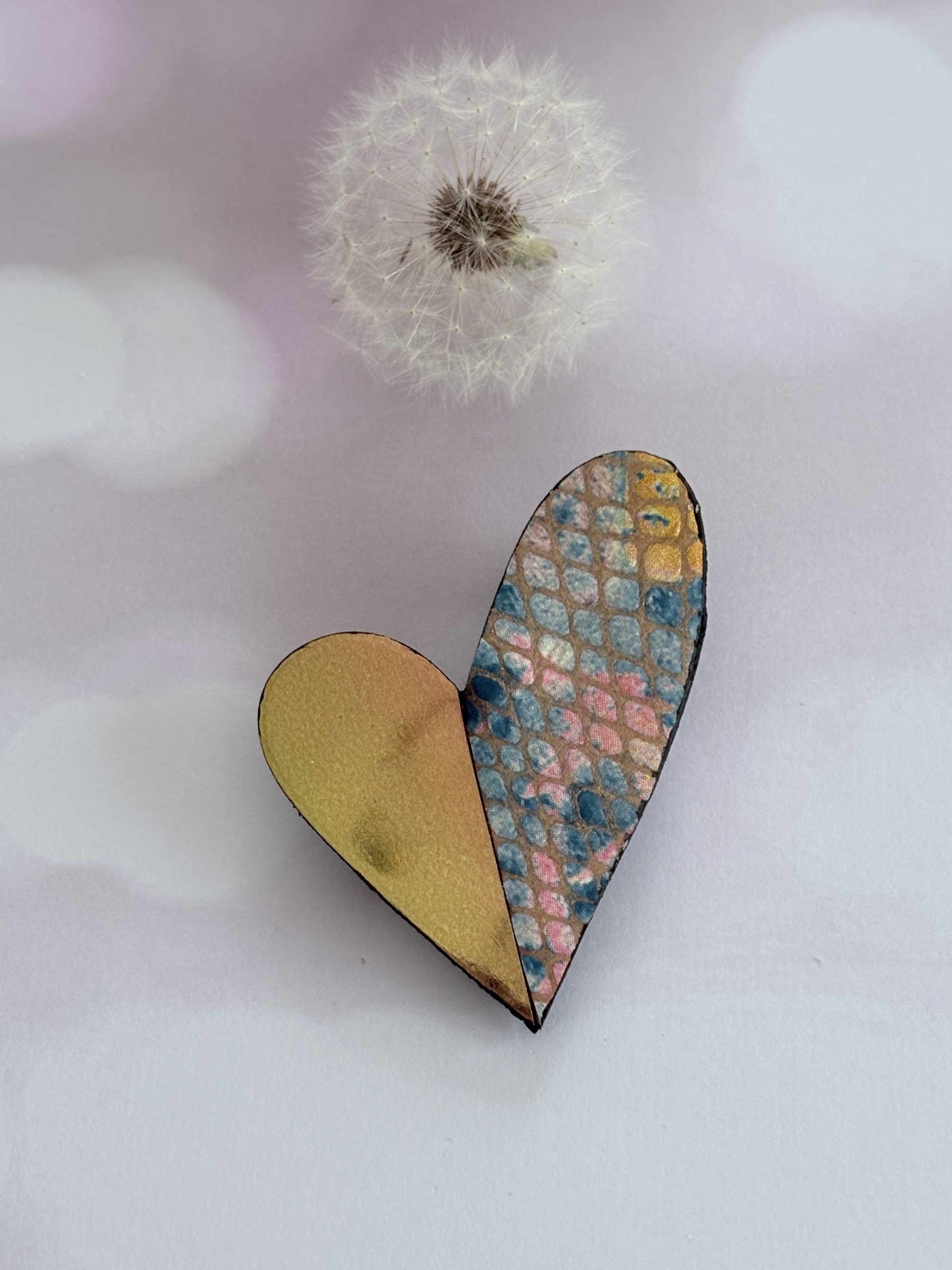 Broche cœur « Be love » en cuir multicolore ,or et orangé glacé