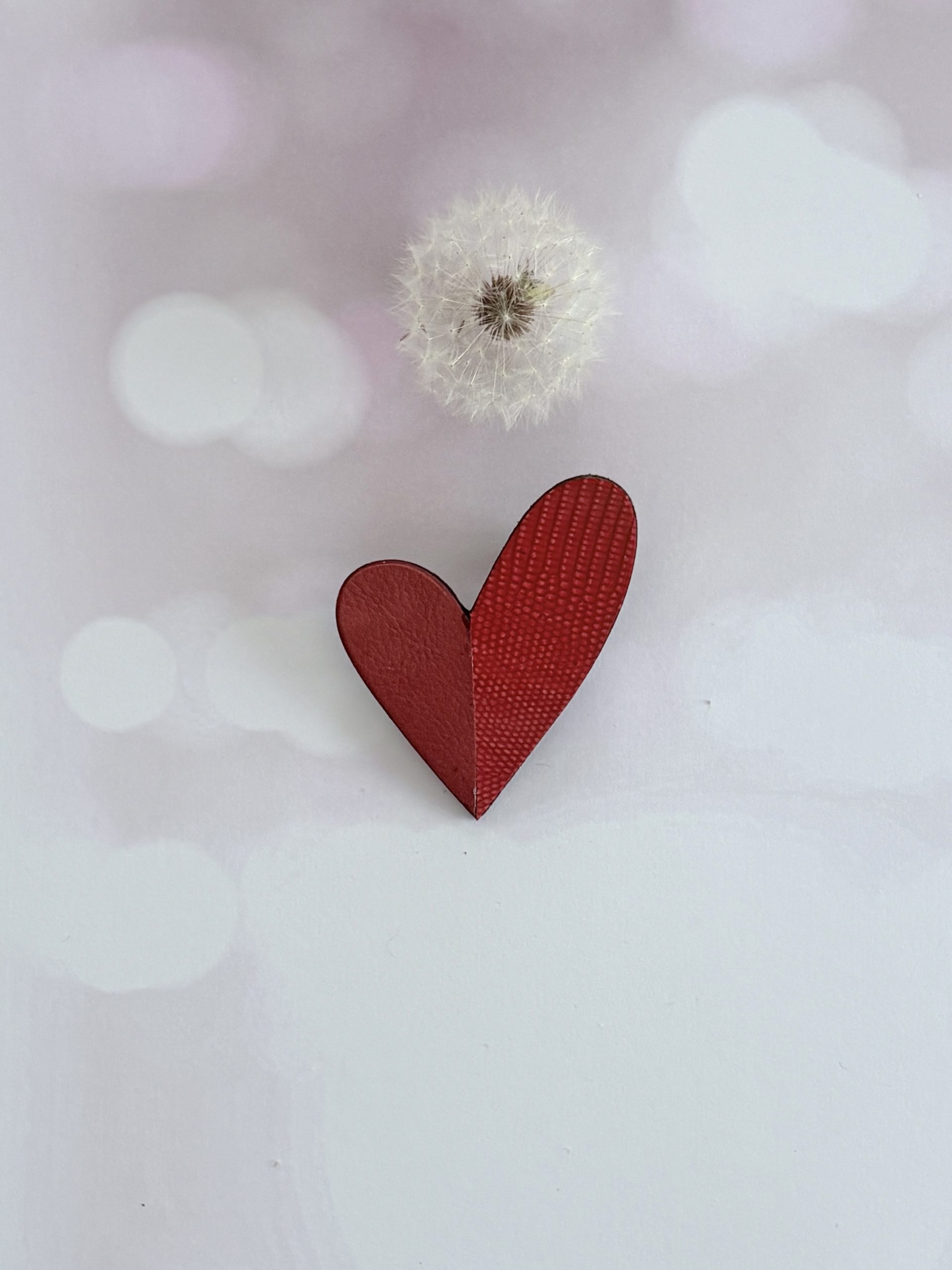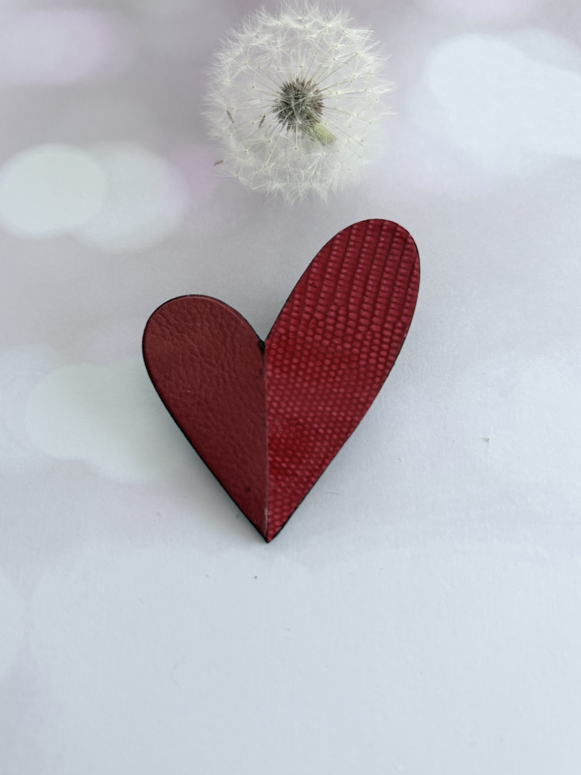 Broche cœur « Be love » en cuir  rouge carmin et rouge effet serpent